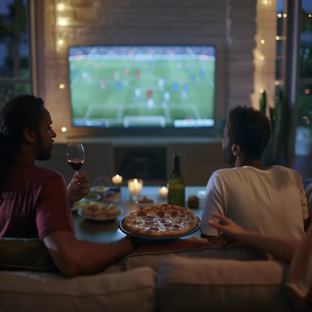 Pair the pizza with wine while watching football (Photo: Midjourney, prompt by Sylvia Ba)