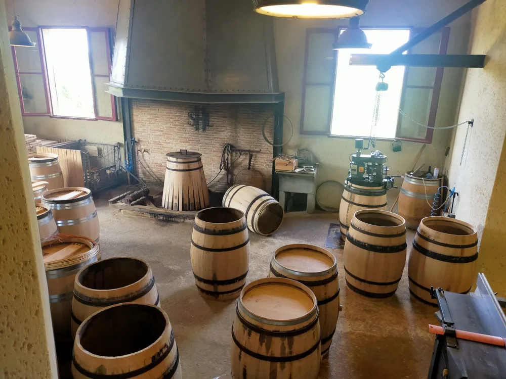 Once the oak is harvested, it's left to dry for a stretch, anywhere from two to ten years, depending on its quality. Then comes the chopping and shaping into small planks, forming the staves of the Barrique. Some pieces are set aside for the barrel's feet and heads. After that, it's time for the toasting, right over an open fire.