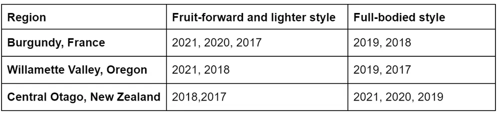 The vintage is not just a number on the bottle. It could be a useful indicator for the wine's flavor character. Years with optimal weather conditions produce a more quality harvest which flows on to the wine. This is particularly important when choosing wines from the Old World, such as Burgundy. An excellent way to check is to refer to vintage charts. Here is a brief summary of the 3 regions mentioned above.