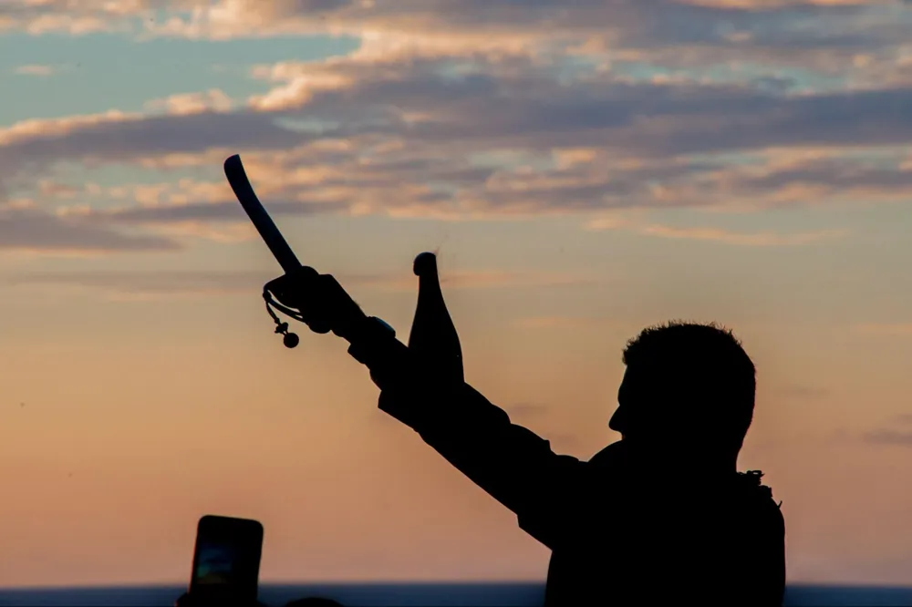 - Position the Saber: Place the saber below the neck of the bottle, aligning it with the seam.